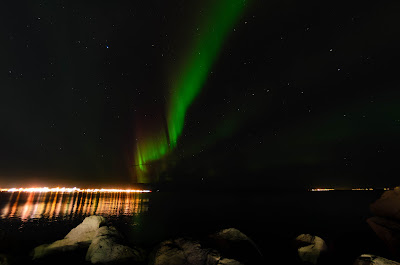 We walked north to the harbor because we thought we would not have too many lights in our view. As you can see we did have some but the lights were still visible.
